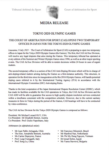 33 Bedford Row arbitrator Susan Ahern has been appointed as an arbitrator for the Olympic Games in Tokyo. The Court of Arbitration for Sport (CAS) is preparing to open two temporary offices in Japan for the Tokyo 2020 Olympic Games and Susan will be attending the event in person. Please read the flyer below for more details.